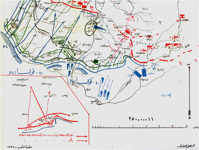 אם לא די בכך, אזי בנספח לספרו הביא חוסין חוסני סדרת מפות שהוכנו לשם כתיבת ההיסטוריה הרשמית של הצבא העות'מאני. יש מקום להניח שהמפות היו מבוססות על חומר כרטוגרפי אמיתי שהיה בשימוש במלחמה. כדוגמא ראו את מפת ההערכות באזור שבו נערך הכנס, בין דהריה לאבו-חוף ותל שריעה.